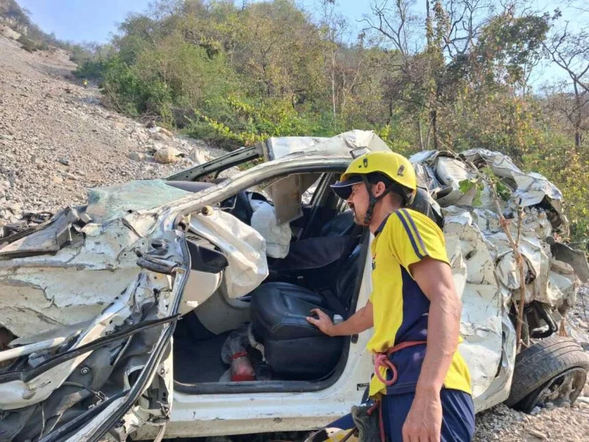 एसडीआरएफ टीम को वाहन के पास एक घायल युवक मिला, जिसने बताया कि कार में एक युवती भी सवार थी, जो हादसे के बाद से लापता है। टीम द्वारा युवती की तलाश के लिए सर्च ऑपरेशन जारी है। दुर्घटनाग्रस्त वाहन टाटा टिगोर (DL 11 CD 3154) बताया जा रहा है। वाहन में सवार लोग—अनीश (22 वर्ष) पुत्र संदीप, निवासी दिल्ली — घायल है। सोनाली (20 वर्ष), निवासी दिल्ली। एसडीआरएफ टीम लापता युवती की तलाश में सर्च ऑपरेशन चला रही है।