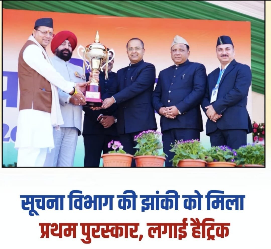 गणतंत्र दिवस के अवसर पर परेड ग्राउंड देहरादून में 10 विभिन्न विभागों की झांकियां का प्रदर्शन देखने को मिला। इस दौरान प्रथम तीन झांकियां को पुरस्कार देकर सम्मानित भी किया गया बता दे की सूचना विभाग की झांकी को प्रथम स्थान प्राप्त हुआ है। जिसमें ‘‘रजत जयंती एवं शीतकालीन धार्मिक यात्रा व पर्यटन’’ विषयक झांकी का प्रदर्शन किया गया है। साथ ही इस झांकी में राज्य के पच्चीस वर्षों की विकास यात्रा के साथ ही तीर्थाटन एवं पर्यटन विकास से जुड़े पहलुओं की आकर्षक झलक देखने को भी मिली। वहीं सूचना महानिदेशक बंशीधर तिवारी ने देश एवं प्रदेशवासियों को गणतंत्र दिवस की बधाई देते हुए कहा कि झांकी के प्रथम भाग में गंगा मन्दिर, मुखवा को प्रदर्शित किया गया है, जो माँ गंगा का शीतकालीन प्रवास है। झांकी के अग्रिम केबिन में उत्तराखण्ड गठन के 25 गौरवशाली वर्ष प्रदर्शित किए गए हैं, जो राज्य की विकास यात्रा, सांस्कृतिक पहचान और निरंतर प्रगति को दर्शाते हैं। इसके साथ ही ट्रेलर के द्वितीय खंड में उत्तराखण्ड की होम स्टे योजना को दर्शाया गया है। वहीं झांकी के अंतिम भाग में उठते हुए पिलर्स के माध्यम से उत्तराखण्ड की वर्ष-दर-वर्ष प्रगति को दर्शाया गया है, जो राज्य के सतत विकास का प्रतीक है। जिसके चलते 2024 और 25 के बाद अब 2026 में भी तीसरी बार सूचना विभाग की झांकी को प्रथम पुरस्कार मिला है। वहीं संयुक्त निदेशक के एस चौहान ने कहा कि लगातार 3 साल से सूचना विभाग की झांकी को प्रथम पुरस्कार मिला है, जोकि गौरवान्वित करने वाला यह पल है।